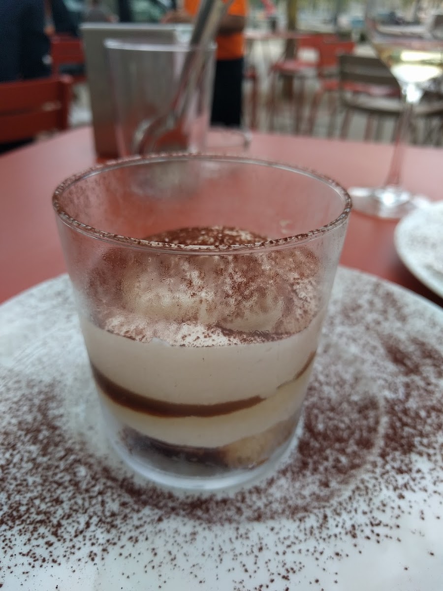 Le Chameau Ivre ( The Drunken Camel) was described by some loyal clients as the "best restaurant " in Béziers and was looking forward to a meal here a second time. For dinner, it's either a Menu Diner for 41 euros or Menu Découverte for 58 euros. Our party of six opted for the Menu diner and one ordered à la carte. For appetizers, the marinated anchovies were very tasty but the mullet carpaccio bland. For main, three of us ordered Scallops ( St. Jacques) with mushrooms. Hmm , the scallops are supposed to be the "star" of the dish but there were a mere three medium sized scallops on a bed of mushrooms and brown coulis, which overpowered the seafood. Moreover, there were pieces of what seemed like prawn crackers, but were not crispy but hard to bite into . This is, for me, a forgettable dish. The others ordered quail with mushrooms, celery and hazelnuts and were highly satisfied with their choice. For dessert, the choco mocha was a 5/5, the Pavlova was short on fruits on coulis ( disappointing) while the Paris Brest Noisette was ho hum. The server who took our orders was very knowledgeable about the dishes but good service ended there. It was on the slow side, especially between the appetizer and the main, most likely because the restaurant had already filled up to the brim. Portions are not generous so beware if you have a huge appetite. The atmosphere is cozy but a lot of seats are on bar stools with half back support.